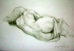 08 – Nudo coricato di spalle – Contè verde 2004, cm 50×35 –